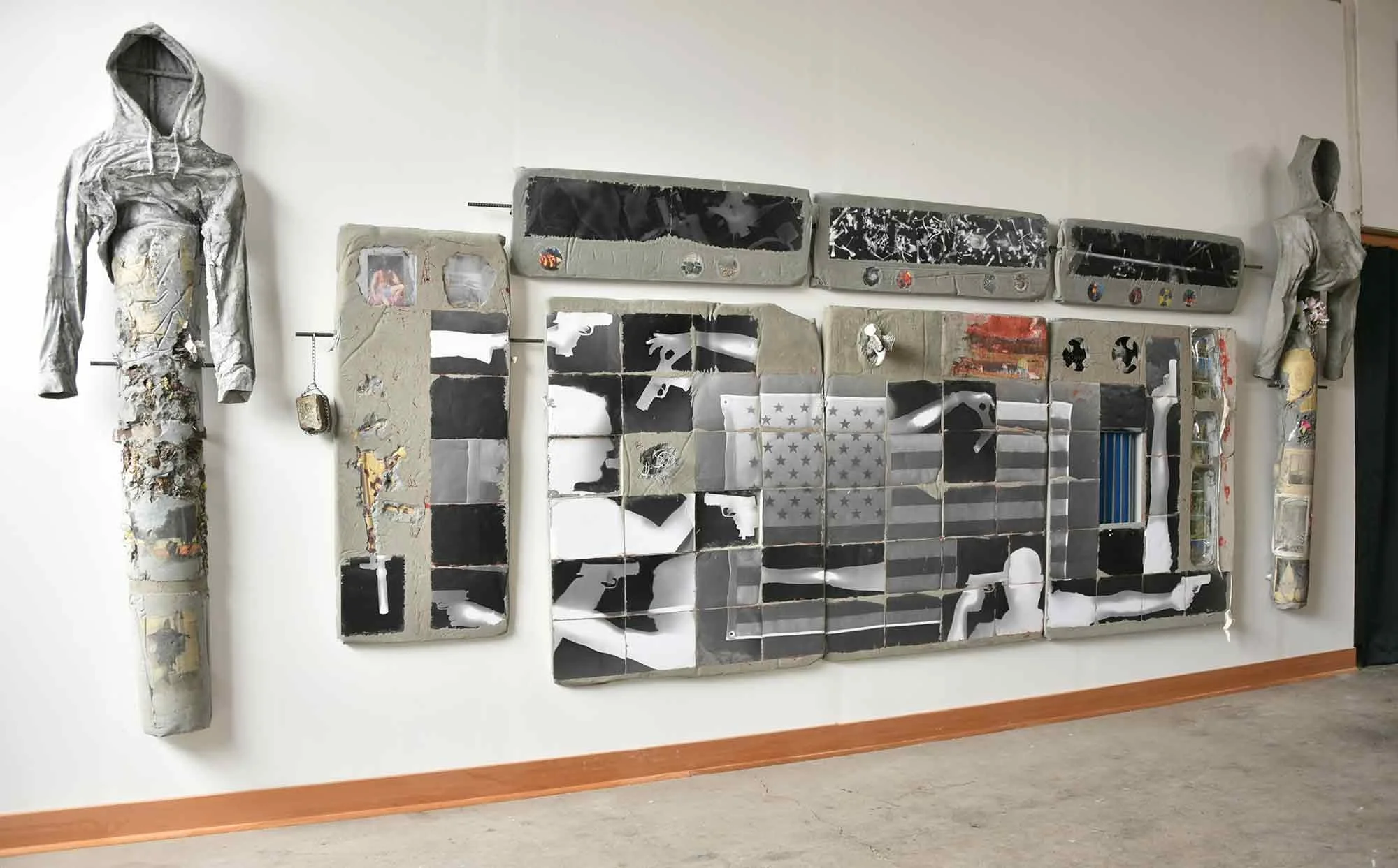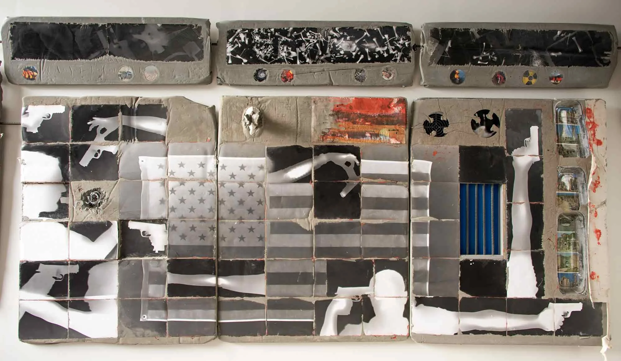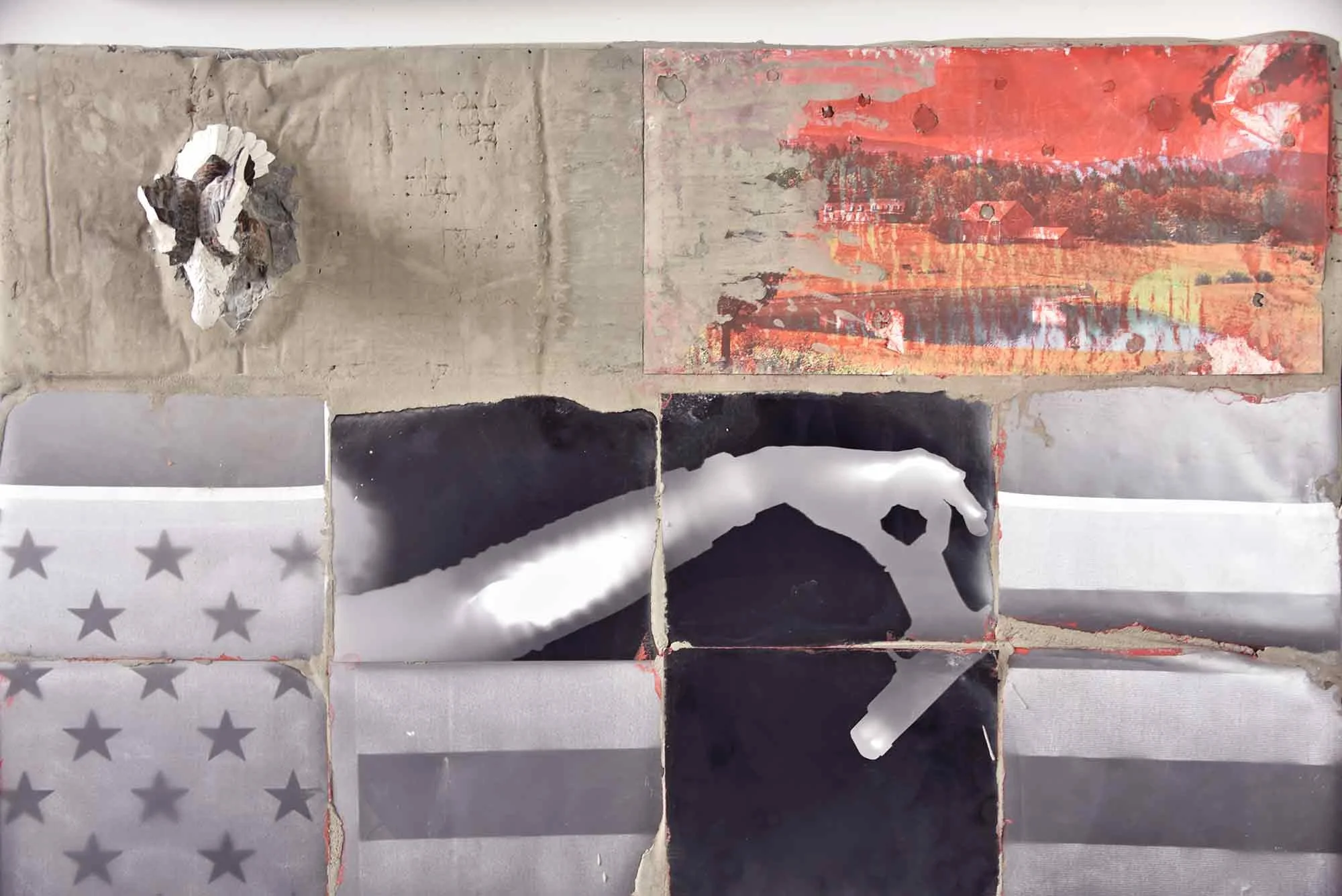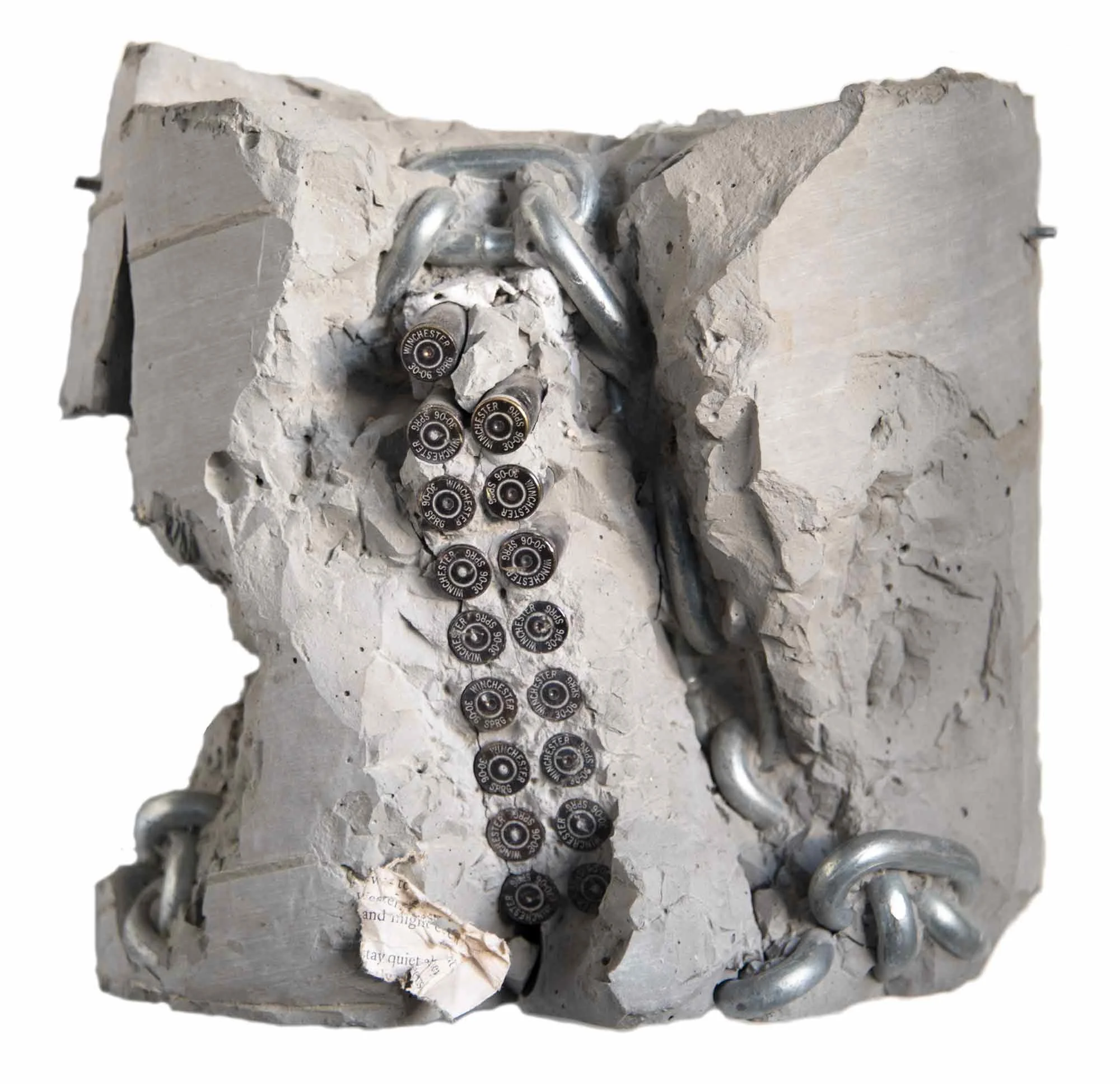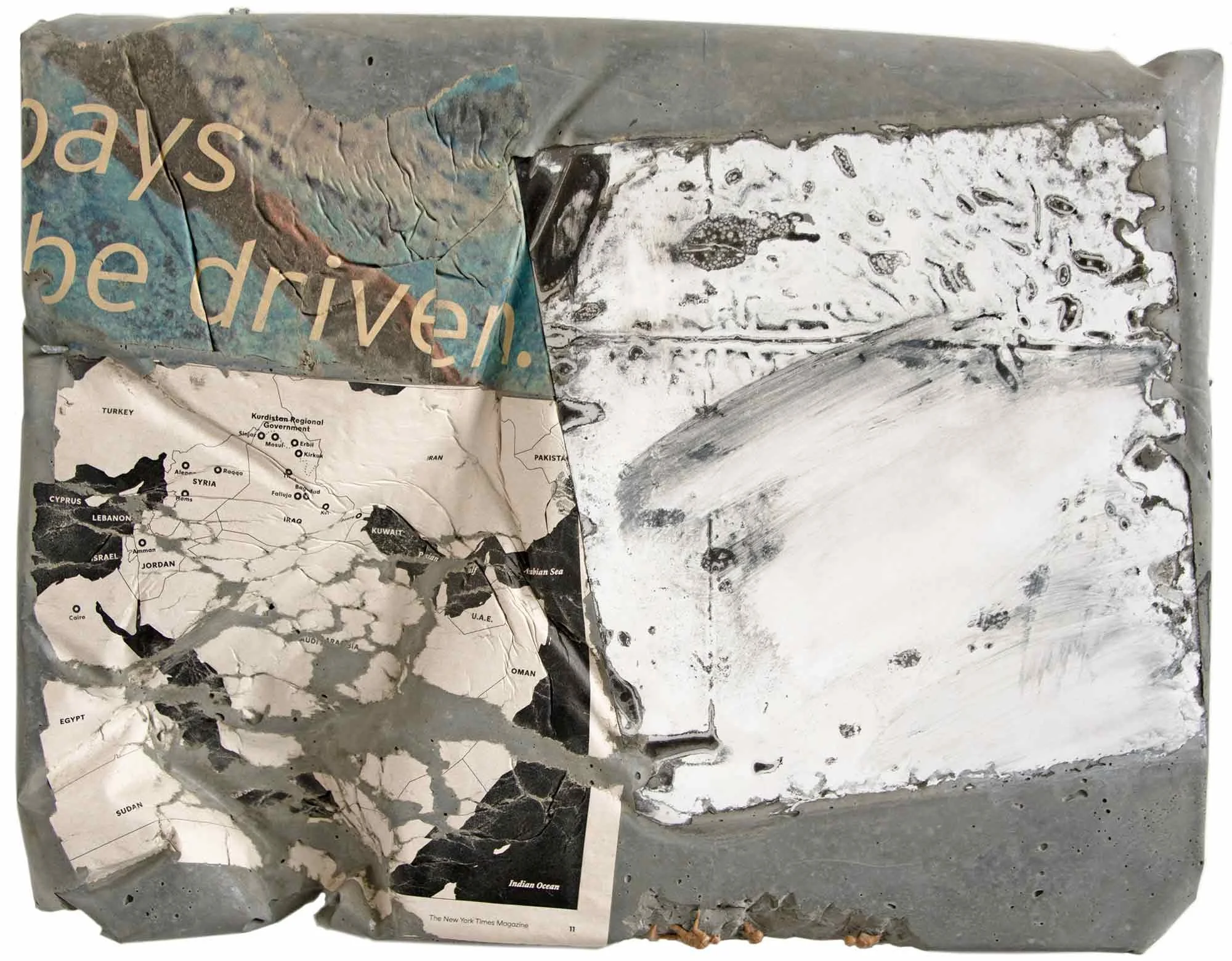 Bas-Relief casts photograms and found objects in concrete to become a present-day ruin and late-capitalist artifact. As much dirge as outcry, it excavates a contemporary geo-eco-political narrative through layers of state-sanctioned violence and a planet under the gun.