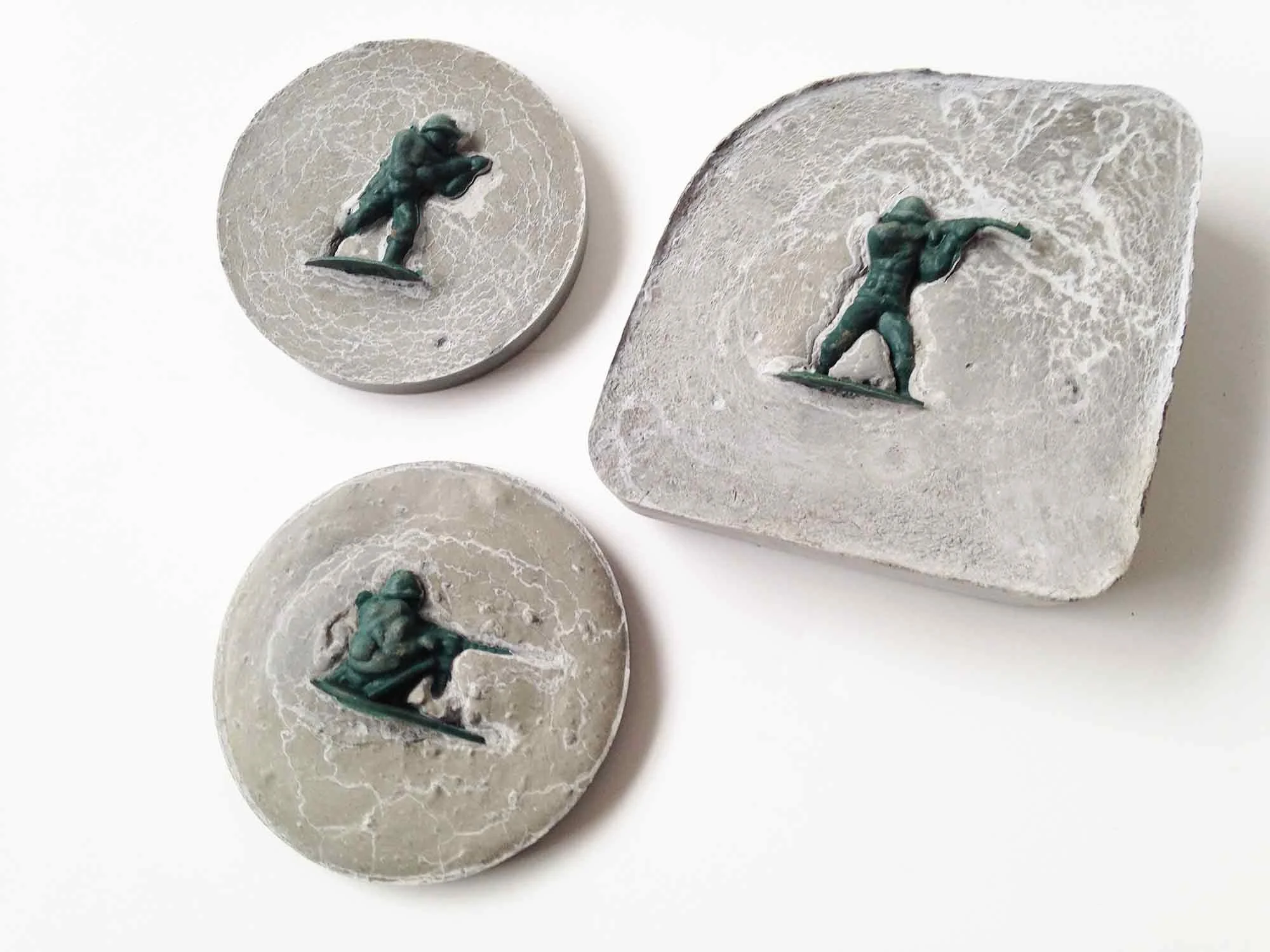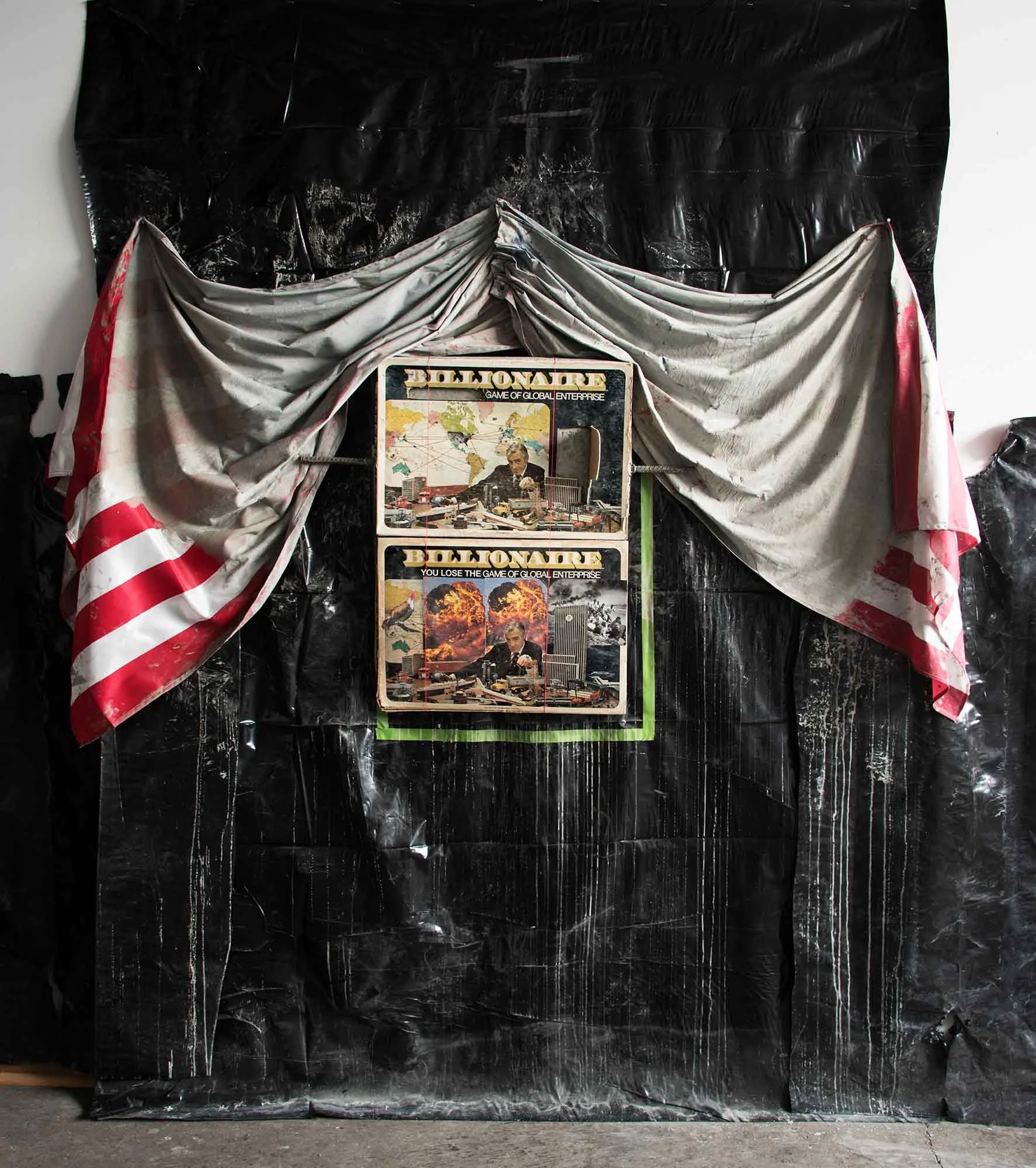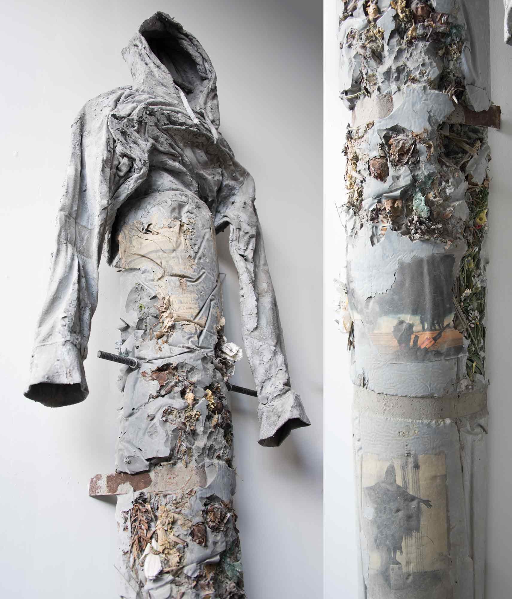 Architectural relief carvings of stone and other materials have historically related epic cultural narratives. Bas-Relief utilizes cement—the building block of empires—as both form and function. It stills the information frenzy, concretizes our contemporary catastrophic narrative and embodies the weight of our collective grief and rage. As an anticipatory ruin, the project contains elements of our current epoch, the Anthropocene. Millions of years hence, researchers may well identify the epoch by such markers as radioactive material, plastic and chicken bones.
